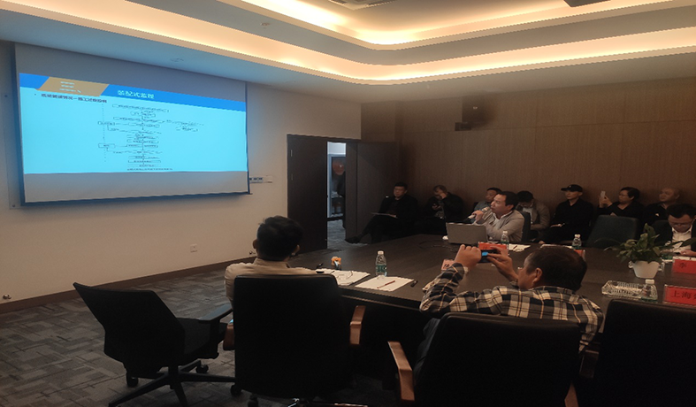 在參觀實體生產(chǎn)后各單位代表開展了技術交流會。交流會先以三個視頻短片介紹了裝配式建筑施工流程為開始,然后美好裝配武漢設計院院長李政詳細介紹了裝配式發(fā)展、美好裝配式施工工藝流程、美好裝配技術體系優(yōu)點等,北京東方華太美好項目總監(jiān)李晨介紹了在美好項目監(jiān)理過程中預制構件驗收、安裝驗收質(zhì)量控制、安全控制等情況,而后各參會代表就裝配式驗收、檢測等裝配發(fā)展中難點問題進行了熱烈討論。